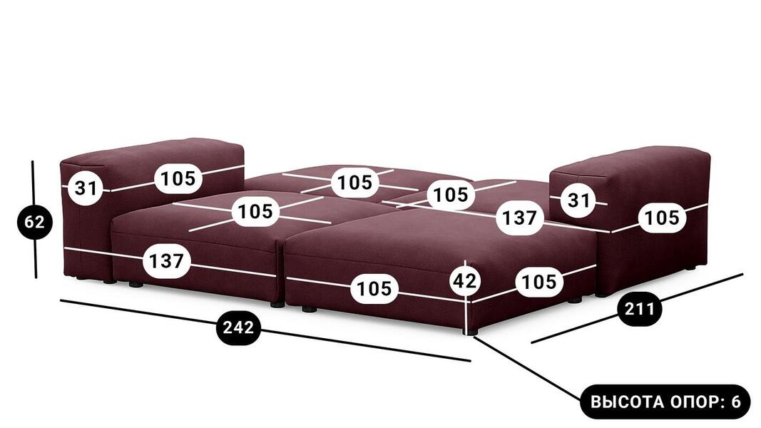 Мебель напрямую от фабрики. Можем менять габариты, цвет, варианты обивки и фасадов. Диван Фиджи отличается высоким качеством материалов и сборки, что гарантирует долговечность и надежность. Современный дизайн гармонично впишется в любой интерьер, а продуманная эргономика обеспечит максимальный комфорт. Преимущества дивана Фиджи Высокое качество и долговечность Современный и стильный дизайн Продуманная эргономика для максимального комфорта Простота в уходе и обслуживании Диван Фиджи - идеальное решение для тех, кто ценит качество, комфорт и красоту. Весь ассортимент мебели от фабрики производится по самым высоким стандартам с использованием передовых технологий. Мы гарантируем безупречное качество каждого изделия и полное соответствие всем необходимым нормам и требованиям. Жизнь не стоит на месте: все меняется, мы растем, а иногда просто чувствуем, что пришло время снова что-то менять. Наши диванные модули разработаны таким образом, чтобы Вы могли легко дополнять или изменять расположение или заново создавать свой образ (за счет соединителей, которые приобретаются дополнительно). Модульные транформеры Фиджи позволят Вам создать уникальный предмет мебели, отражающий Вашу индивидуальность и стиль жизни. Смешивайте и подбирайте ткани и размеры, а также добавляйте дополнительные модули, чтобы создать свой фирменный диван. Кушетка, на которой можно свернуться калачиком и почитать книгу, диван, на котором можно вздремнуть или большой гостиный гарнитур для всей семьи - наши диванные модули мгновенно позволят Вам почувствовать комфорт. Характеристики дивана Фиджи Функциональность Диван для отдыха Исполнение Комплектация: 2 пуфа со спинкой 105*137 см, 2 пуфа 105*105 см Обивочный материал: Союз М Velutto 15 (велюр) Опоры: пластик ППУ 3040 Механизм трансформации Трансформер Нераскладной Габариты (Ширина*Глубина*Высота) 242*211*62 см Гарантия: 18 месяцев Обновлено:22.02.2026