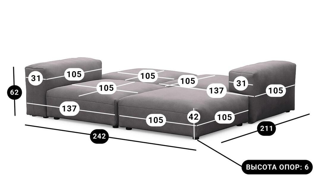 Мебель напрямую от фабрики. Можем менять габариты, цвет, варианты обивки и фасадов. Диван Фиджи отличается высоким качеством материалов и сборки, что гарантирует долговечность и надежность. Современный дизайн гармонично впишется в любой интерьер, а продуманная эргономика обеспечит максимальный комфорт. Преимущества дивана Фиджи Высокое качество и долговечность Современный и стильный дизайн Продуманная эргономика для максимального комфорта Простота в уходе и обслуживании Диван Фиджи - идеальное решение для тех, кто ценит качество, комфорт и красоту. Весь ассортимент мебели от фабрики производится по самым высоким стандартам с использованием передовых технологий. Мы гарантируем безупречное качество каждого изделия и полное соответствие всем необходимым нормам и требованиям. Жизнь не стоит на месте: все меняется, мы растем, а иногда просто чувствуем, что пришло время снова что-то менять. Наши диванные модули разработаны таким образом, чтобы Вы могли легко дополнять или изменять расположение или заново создавать свой образ (за счет соединителей, которые приобретаются дополнительно). Модульные транформеры Фиджи позволят Вам создать уникальный предмет мебели, отражающий Вашу индивидуальность и стиль жизни. Смешивайте и подбирайте ткани и размеры, а также добавляйте дополнительные модули, чтобы создать свой фирменный диван. Кушетка, на которой можно свернуться калачиком и почитать книгу, диван, на котором можно вздремнуть или большой гостиный гарнитур для всей семьи - наши диванные модули мгновенно позволят Вам почувствовать комфорт. Характеристики дивана Фиджи Функциональность Диван для отдыха Исполнение Комплектация: 2 пуфа со спинкой 105*137 см, 2 пуфа 105*105 см Обивочный материал: Союз М Velutto 19 (велюр) Опоры: пластик ППУ 3040 Механизм трансформации Трансформер Нераскладной Габариты (Ширина*Глубина*Высота) 242*211*62 см Гарантия: 18 месяцев Обновлено:22.02.2026