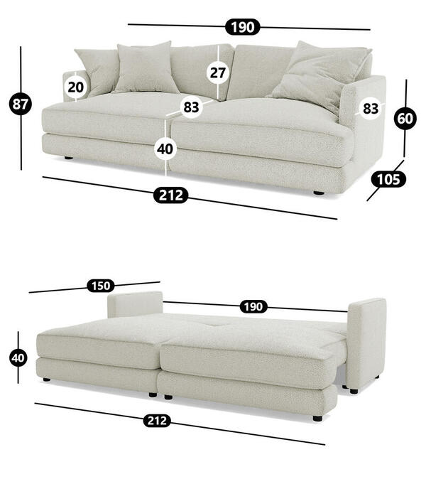 Диван Ибица 2 Camel 01 212*105*87 см, Бежевый Букле Еврокнижка Фиеста