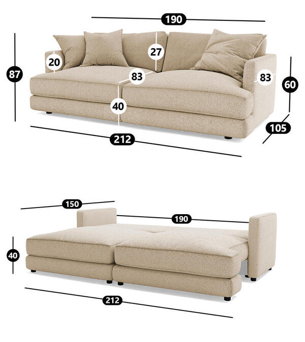 Диван Ибица 2 Camel 13 212*105*87 см, Бежевый Букле Еврокнижка Фиеста