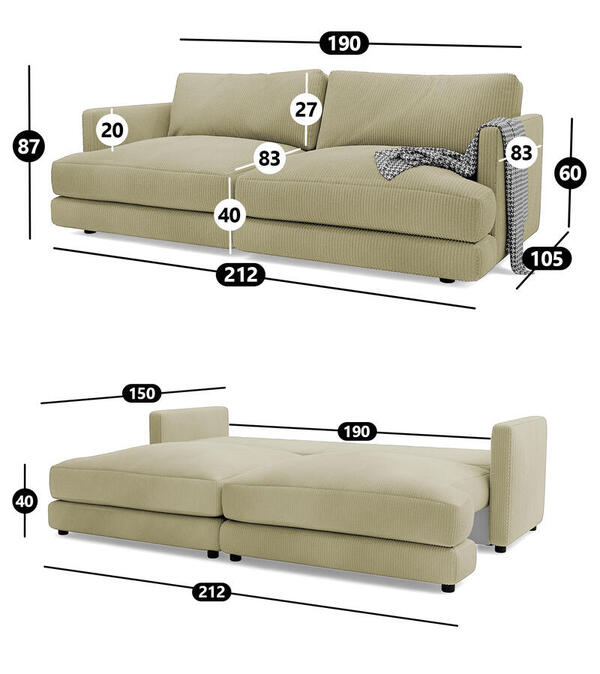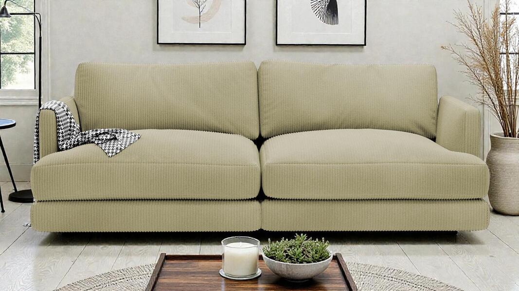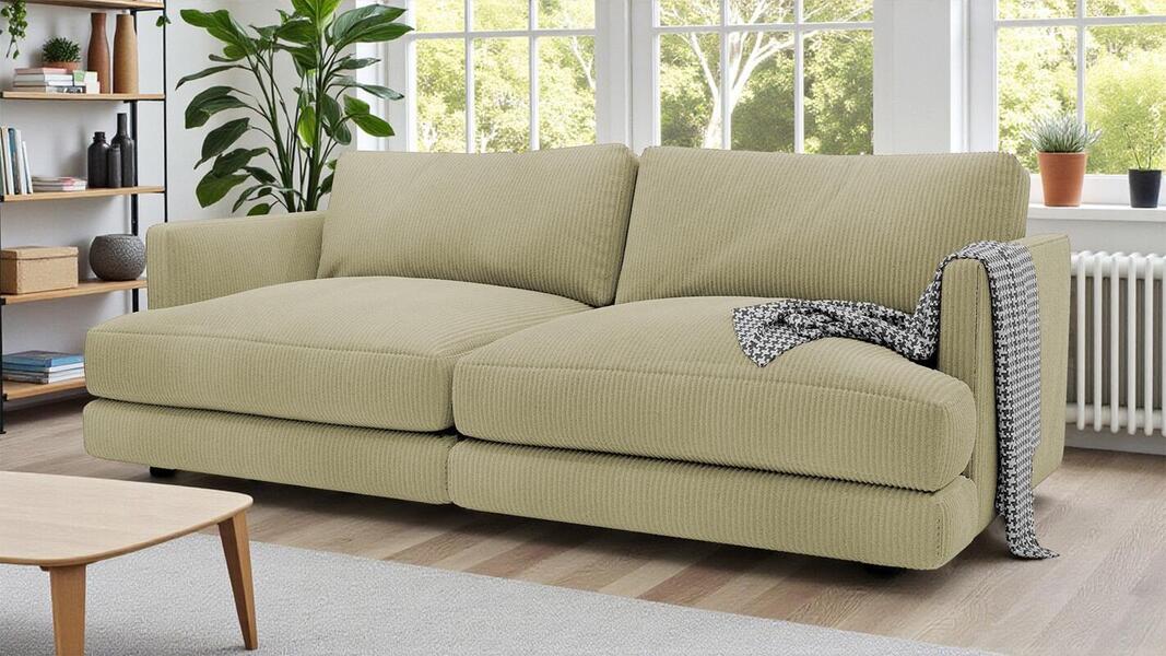 Диван Ибица 2 Cilium Cream 212*105*87 см, Бежевый Вельвет Еврокнижка Фиеста