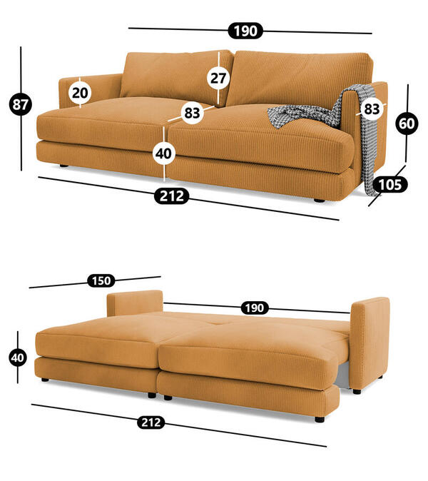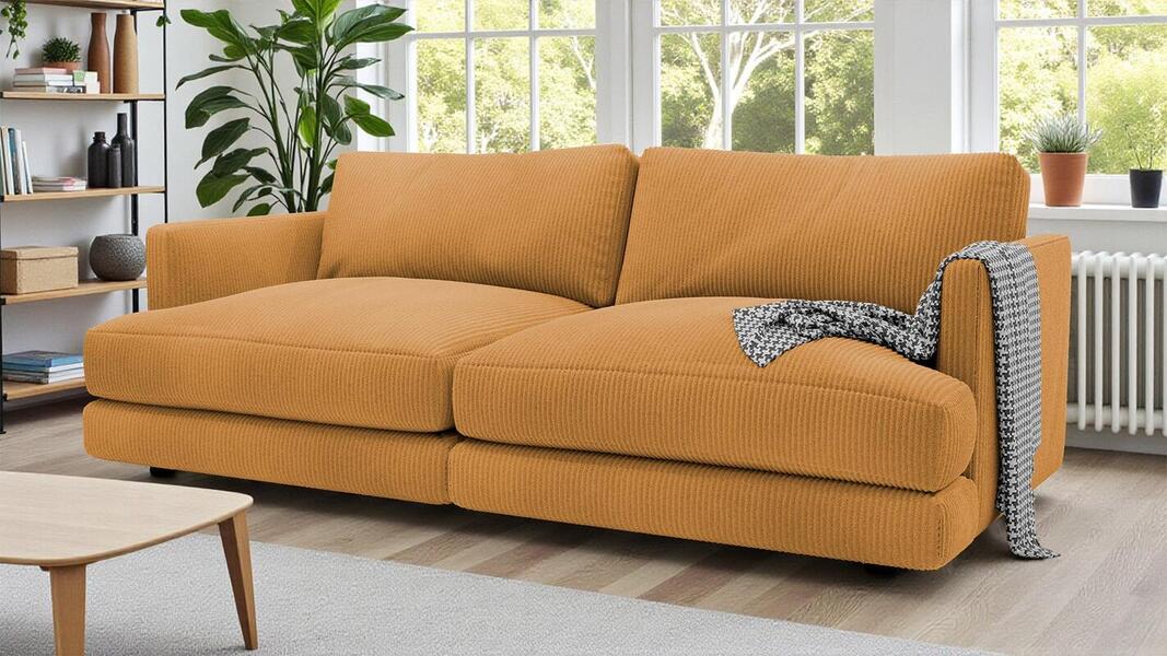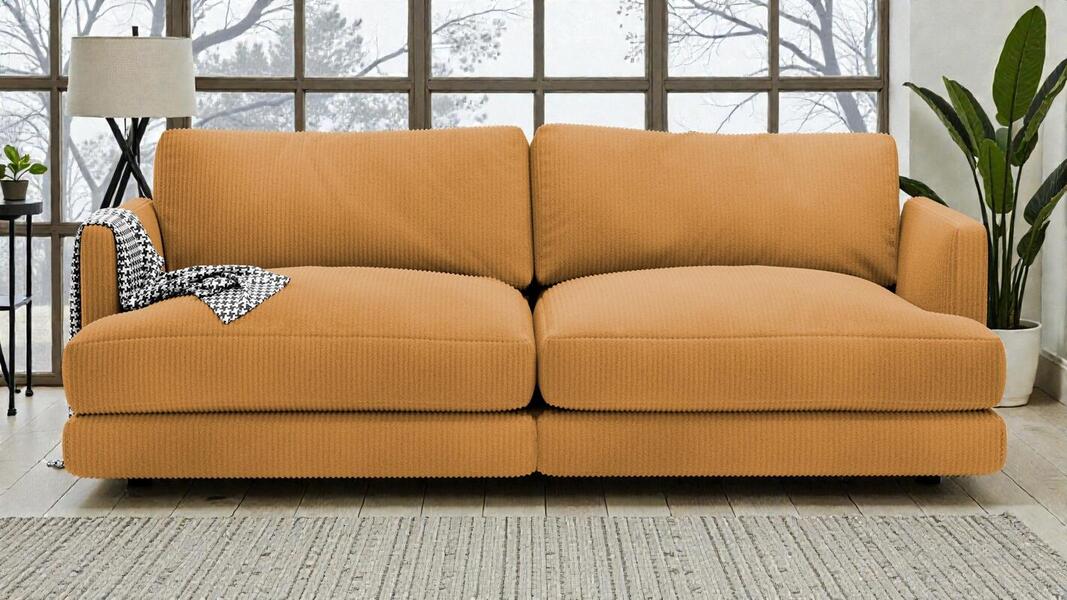 Диван Ибица 2 Cilium Umber 212*105*87 см, Желтый Вельвет Еврокнижка Фиеста