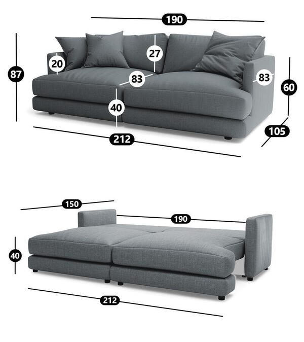 Диван Ибица 2 Strong Plus 10 212*105*87 см, Серый Рогожка Еврокнижка Фиеста