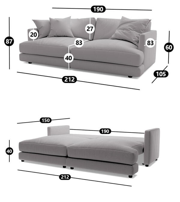 Диван Ибица 2 Velutto 19 212*105*87 см, Серый Велютто Еврокнижка Фиеста