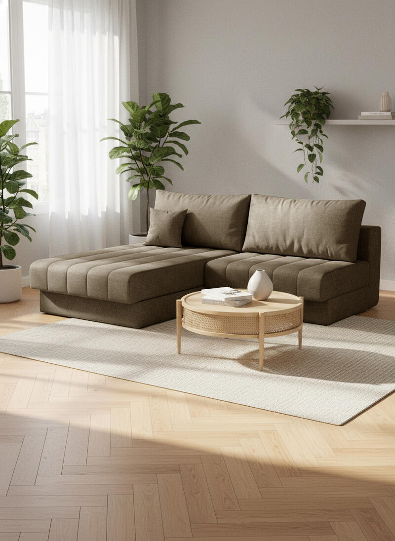 Мебель напрямую от фабрики. Можем менять габариты, цвет, варианты обивки и фасадов. Диван с оттоманкой Бомонд отличается высоким качеством материалов и сборки, что гарантирует долговечность и надежность. Современный дизайн гармонично впишется в любой интерьер, а продуманная эргономика обеспечит максимальный комфорт. Преимущества дивана с оттоманкой Бомонд Высокое качество и долговечность Современный и стильный дизайн Продуманная эргономика для максимального комфорта Простота в уходе и обслуживании Диван с оттоманкой Бомонд - идеальное решение для тех, кто ценит качество, комфорт и красоту. Весь ассортимент мебели от фабрики производится по самым высоким стандартам с использованием передовых технологий. Мы гарантируем безупречное качество каждого изделия и полное соответствие всем необходимым нормам и требованиям. Диван с оттоманкой Бомонд - удобный угловой диван. Несмотря на свои габариты, диван достаточно компактен, его можно расположить как, например, в квартирах-студиях, так и в помещениях офисного типа. Благодаря стильному дизайну, диван будет отличным решением для интерьеров любого типа. Достоинством данной модели является огромный выбор цветовых решений (цвет и материал обивки можно подобрать на любой вкус). Кроме того, диван трансформируется в полноценное спальное место для двоих. Также Вы можете приобрести дополнительные аксессуары, выполненные в общей стилистике данной линейки мебели. Красивый, удобный, надежный, диван с оттоманкой Бомонд сможет комфортно разместить Вас и Ваших близких. Характеристики дивана с оттоманкой Бомонд Функциональность Диван-кровать Подходит для ежедневного сна Двуспальный Исполнение Диван с оттоманкой Обивочный материал: Adilet Strong 04 (рогожка) Блок Независимых Пружин (БНП) Опоры: пластик ППУ 3040 Возможные механизмы трансформации Еврокнижка Тик-Так Габариты (Ширина*Глубина*Высота) 197*150*80 см Размер спального места 130*197 см Дополнительные элементы Выбор механизма за отдельную плату (вы можете заказать его дополнительно по индивидуальному расчету) Гарантия: 18 месяцев Обновлено:24.03.2026