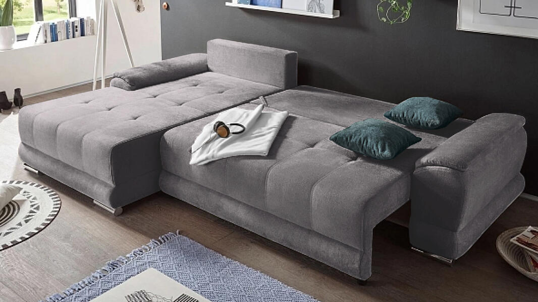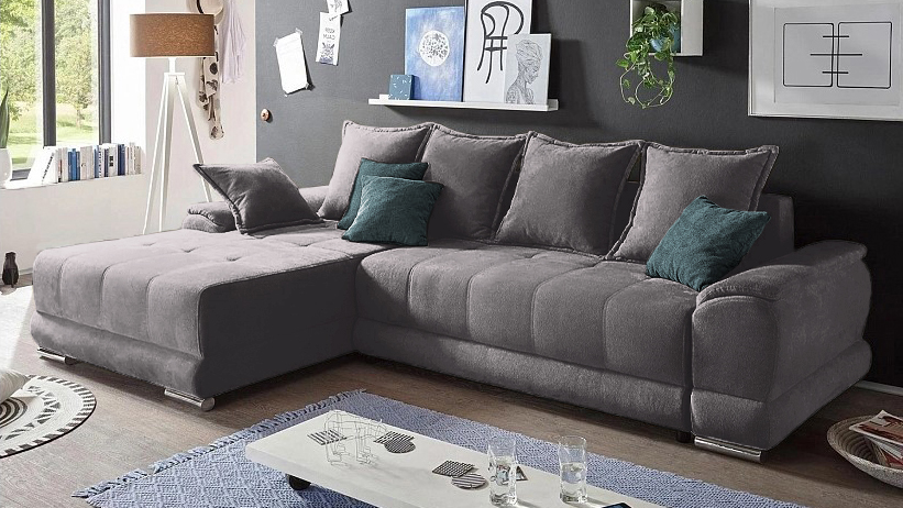 Диван с оттоманкой Нордик Velutto 19 285*190*87 см, Серый Велютто Еврокнижка Фиеста
