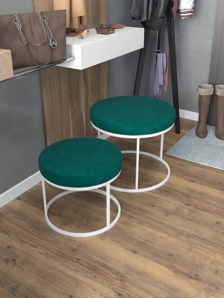 Комплект круглых банкеток - БЗЕЛ - зеленое на белом