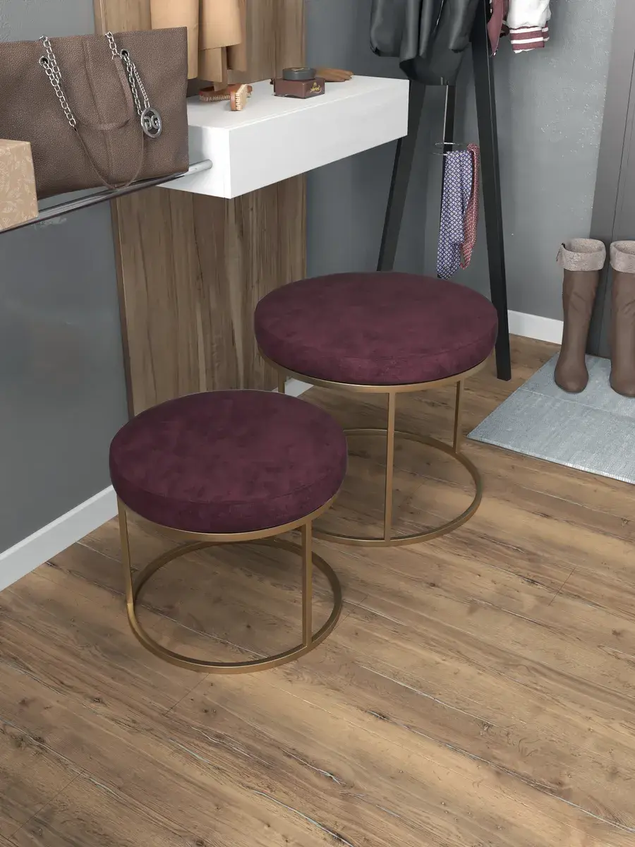 Комплект круглых банкеток - ЗБОРД - бордовое на золотом