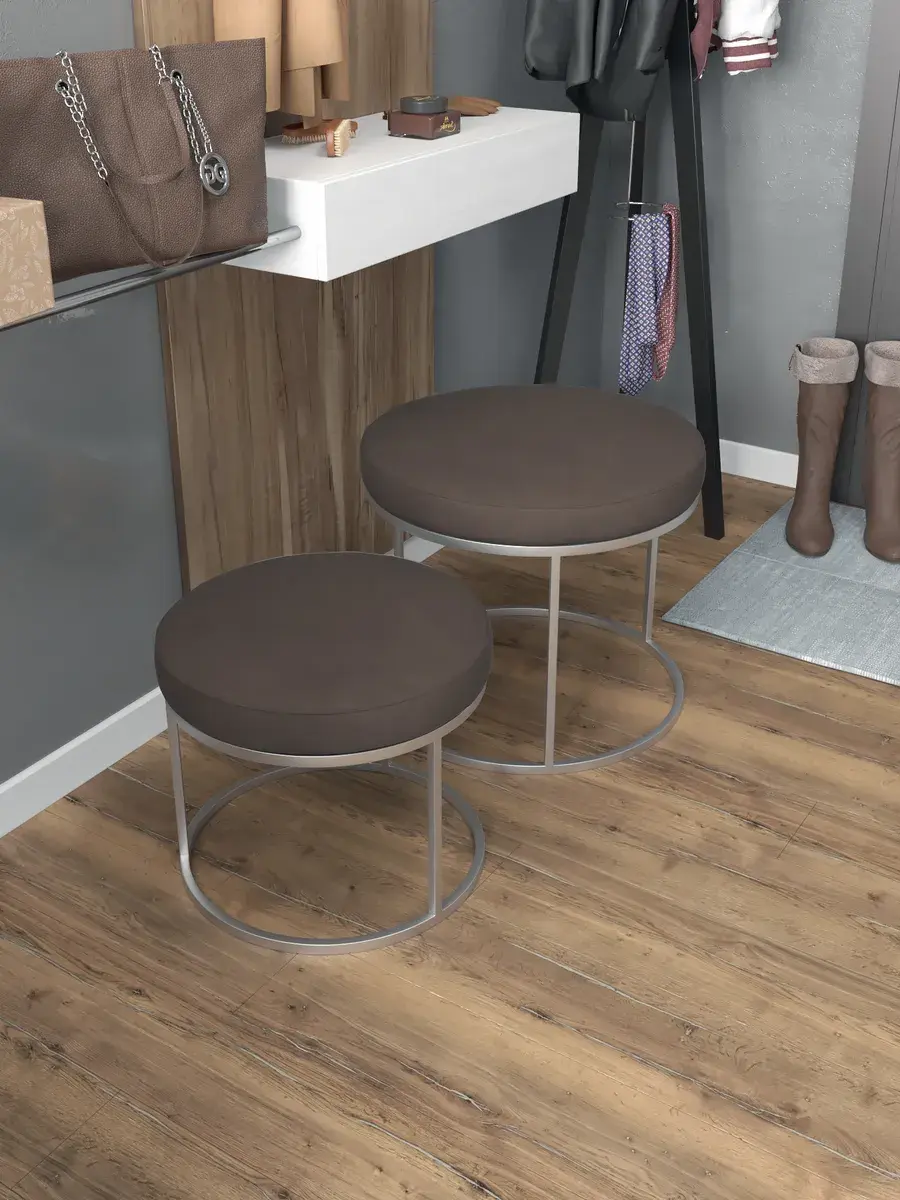 Комплект круглых банкеток - СКОР - коричневое на серебре