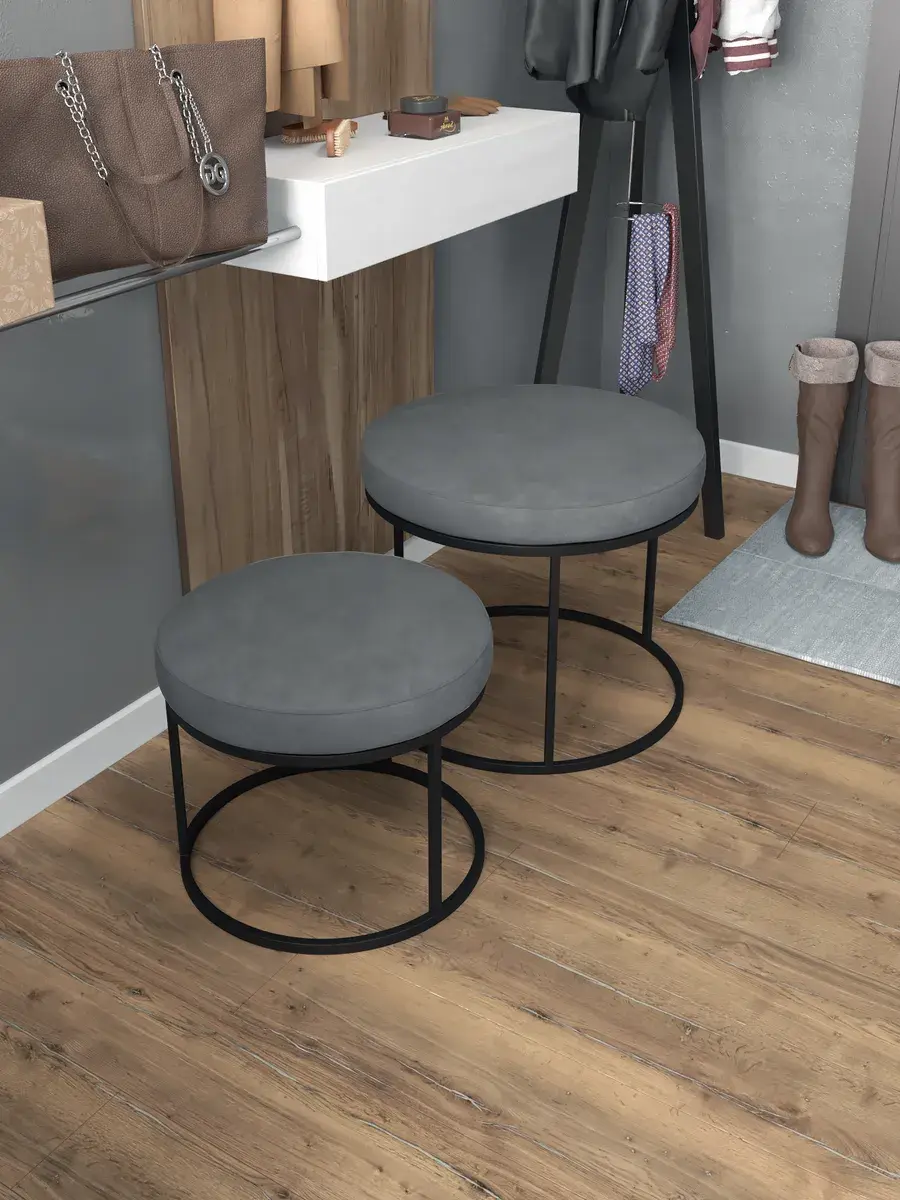 Комплект круглых банкеток - ЧСЕР - серое на черном