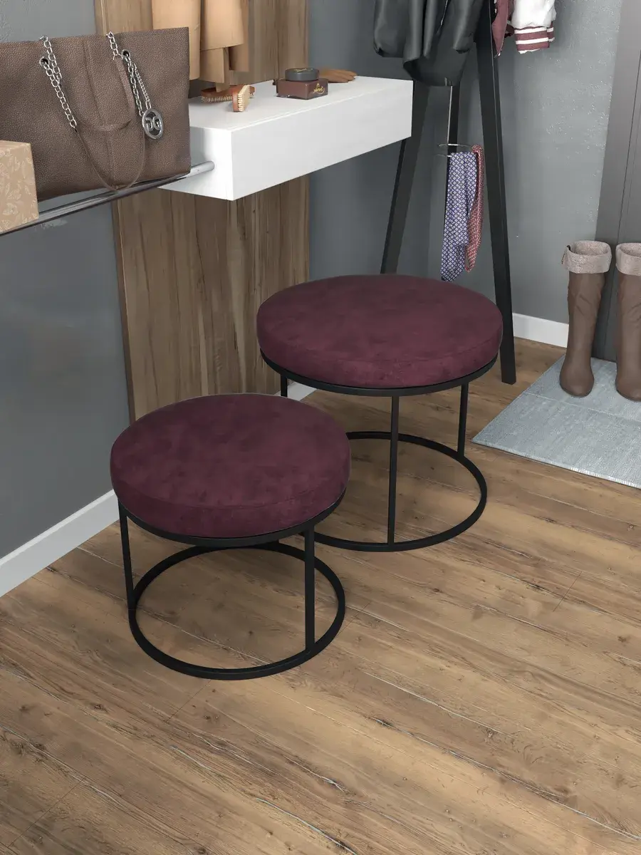 Комплект круглых банкеток - ЧБОРД - бордовое на черном