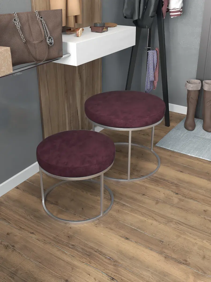 Комплект круглых банкеток - СБОРД - бордовое на серебре