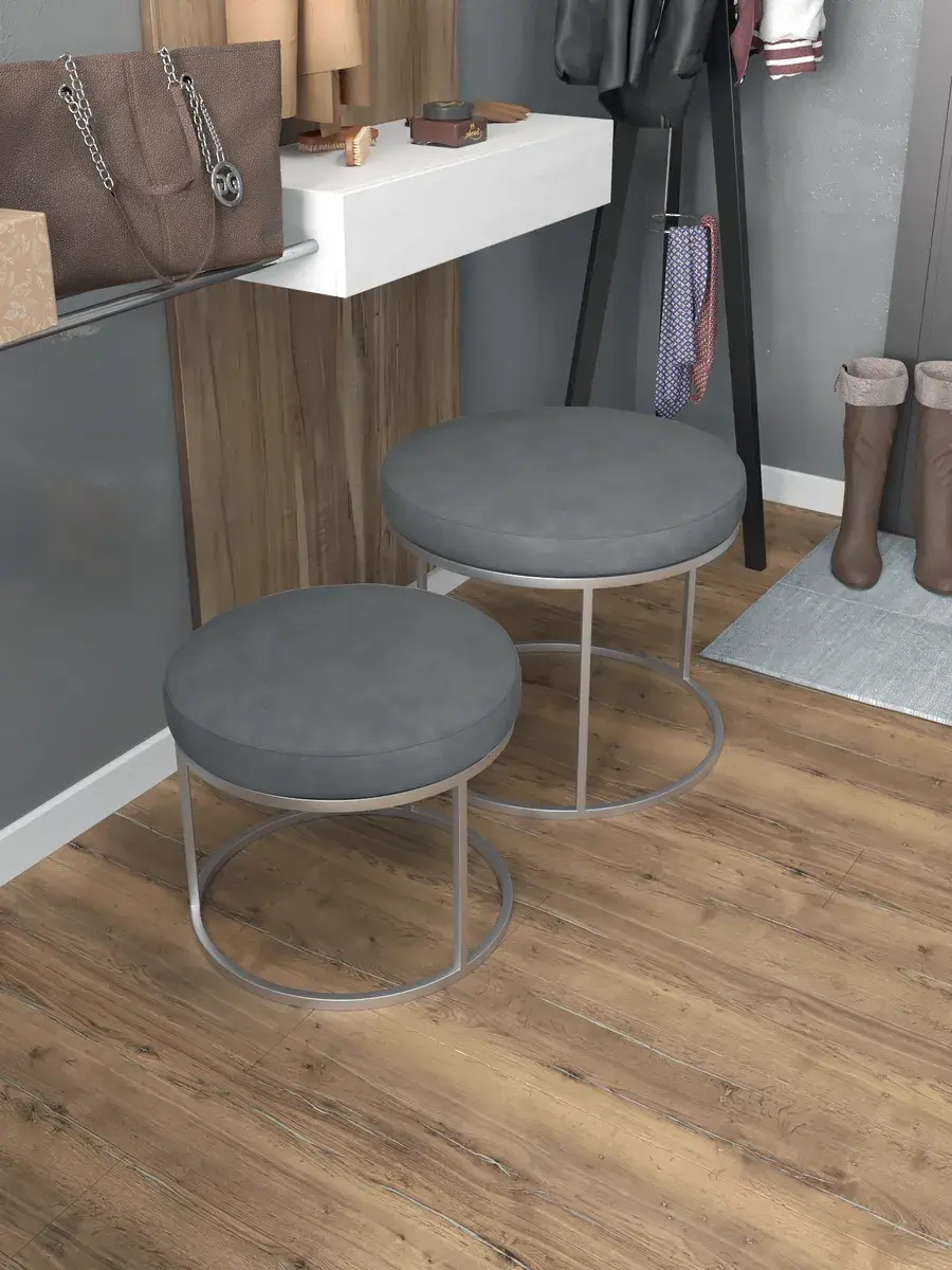 Комплект круглых банкеток - ССЕР - серое на серебрянном