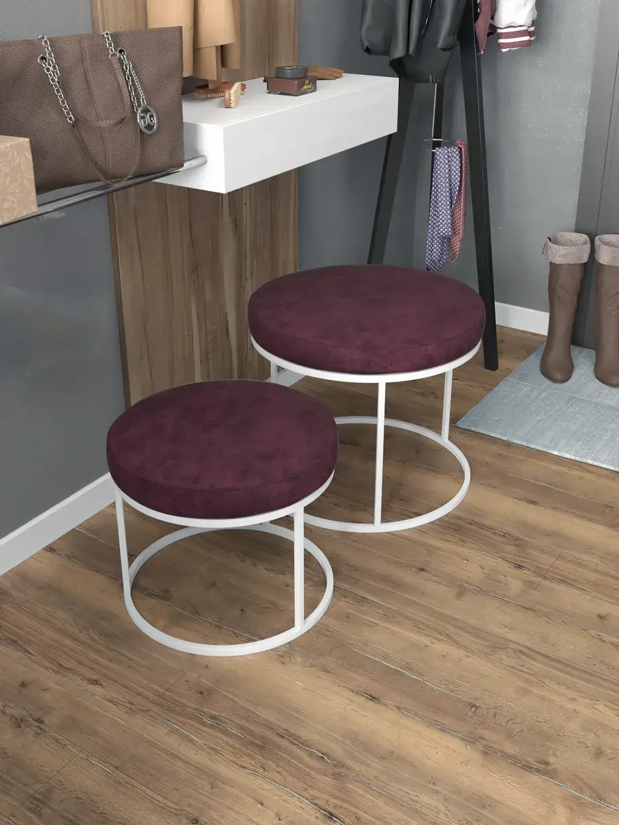 Комплект круглых банкеток - ББОРД - бордовое на белом