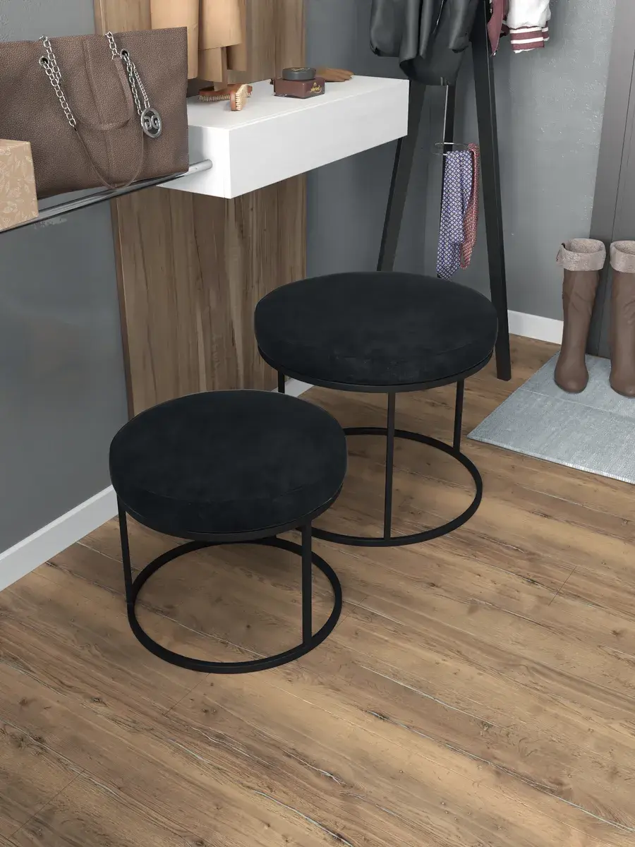 Комплект круглых банкеток - ЧЧЕРН - черное на черном