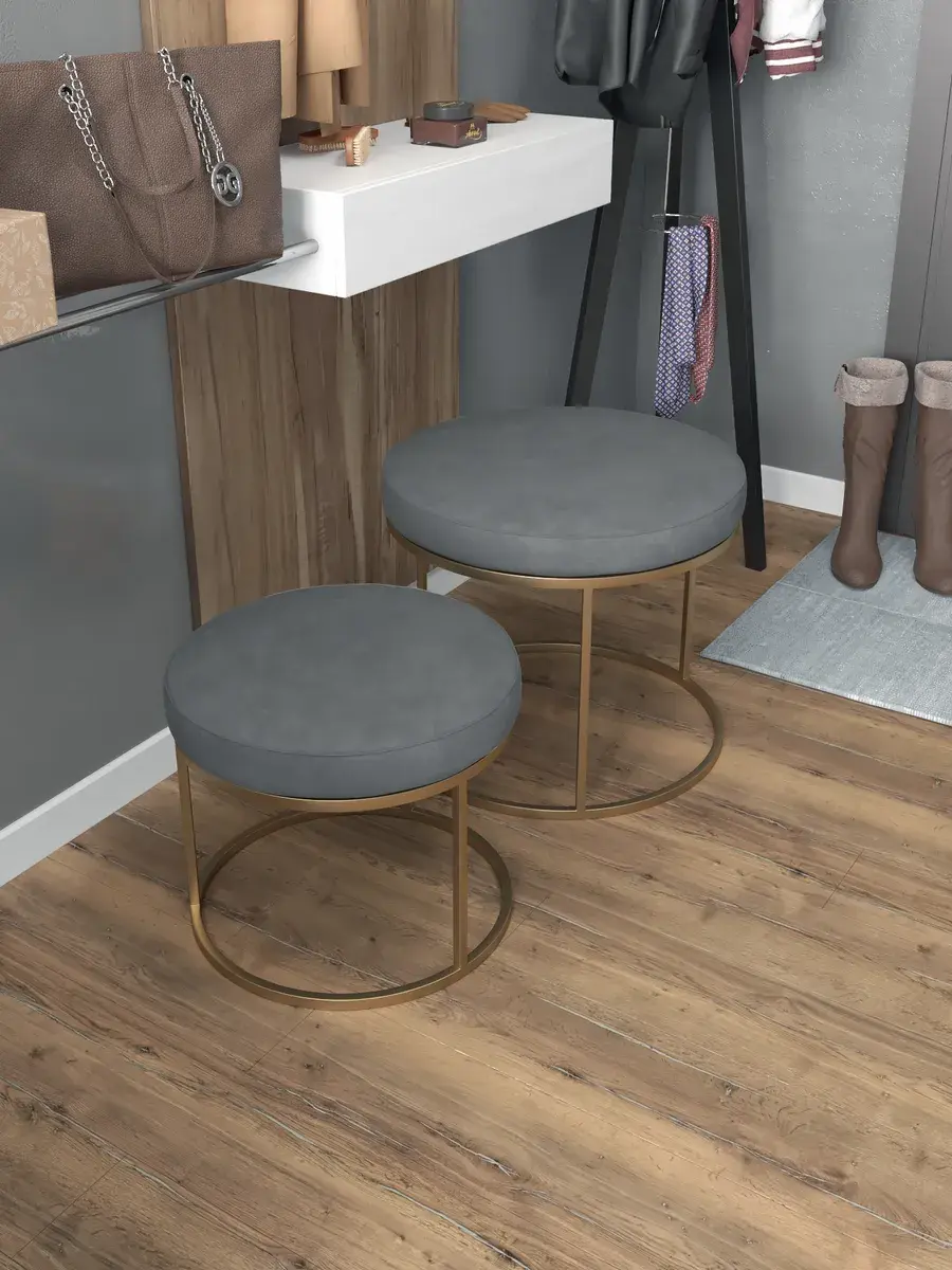 Комплект круглых банкеток - ЗСЕР - серое на золотом