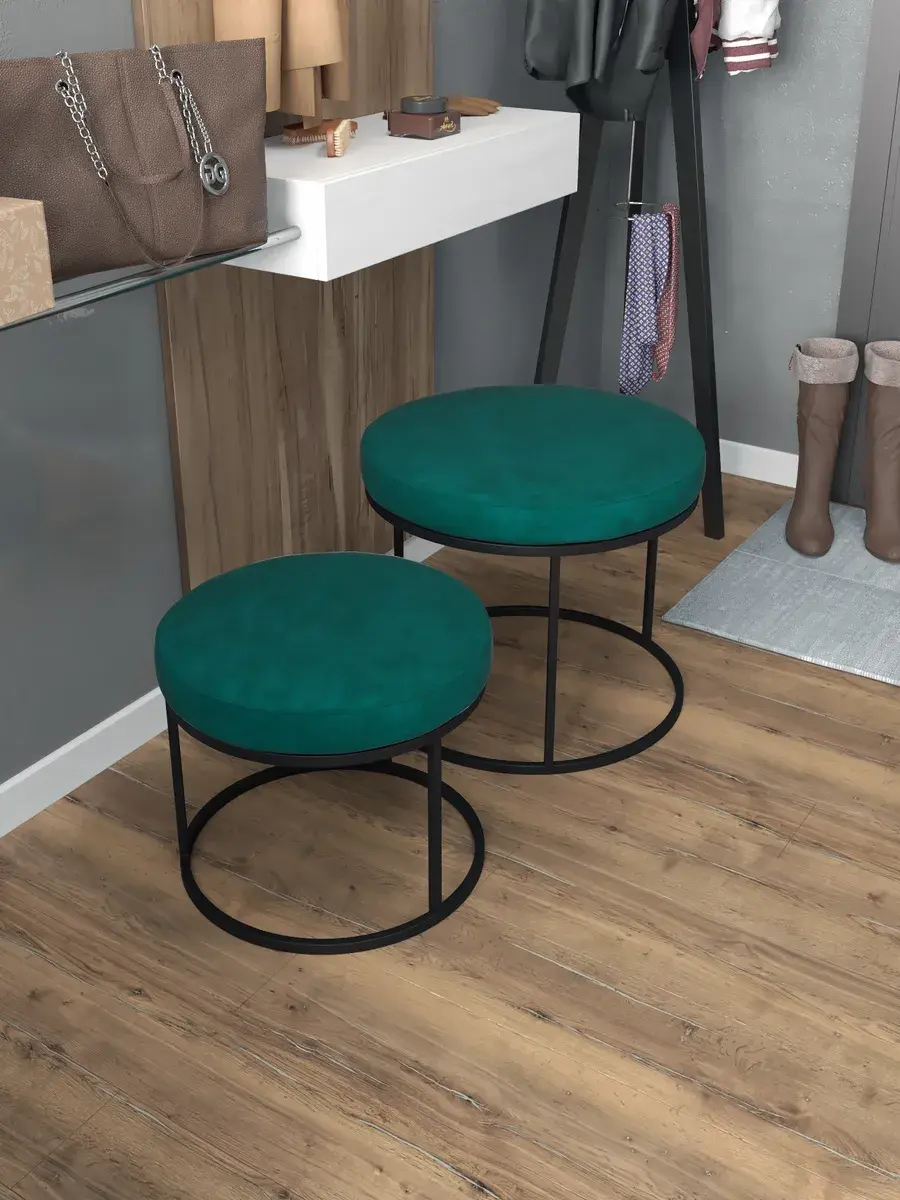 Комплект круглых банкеток - ЧЗЕЛ - зеленое на черном