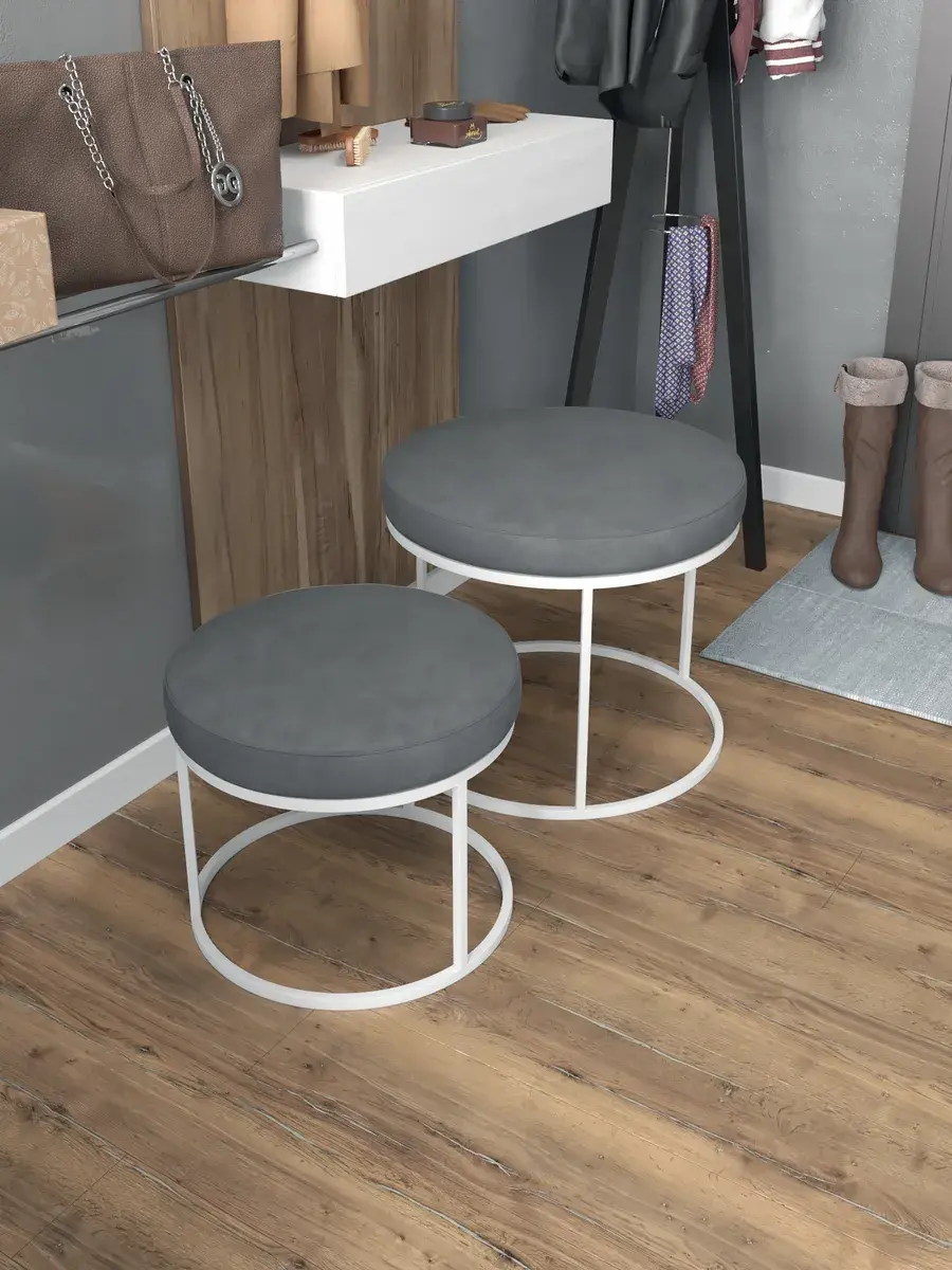 Комплект круглых банкеток - БСЕР - серое на белом