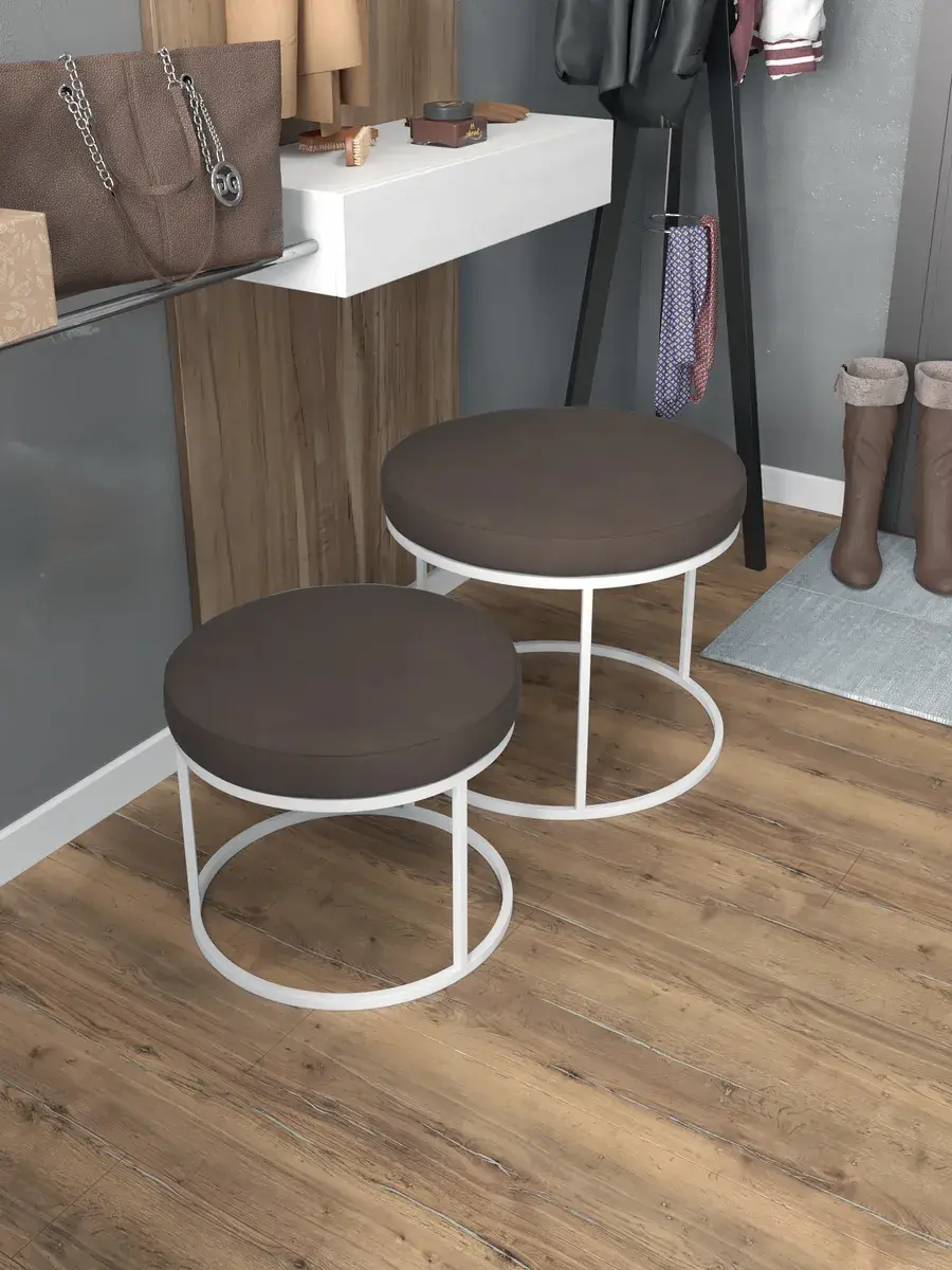 Комплект круглых банкеток - БКОР - коричневое на белом