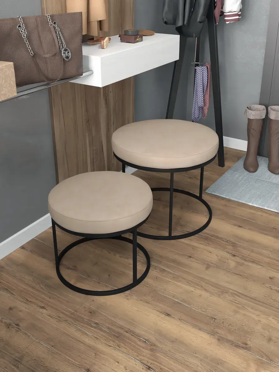 Комплект круглых банкеток - ЧБЕЖ - бежевое на черном
