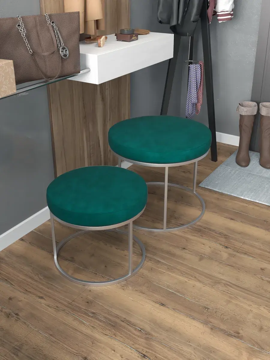 Комплект круглых банкеток - СЗЕЛ - зеленое на серебрянном