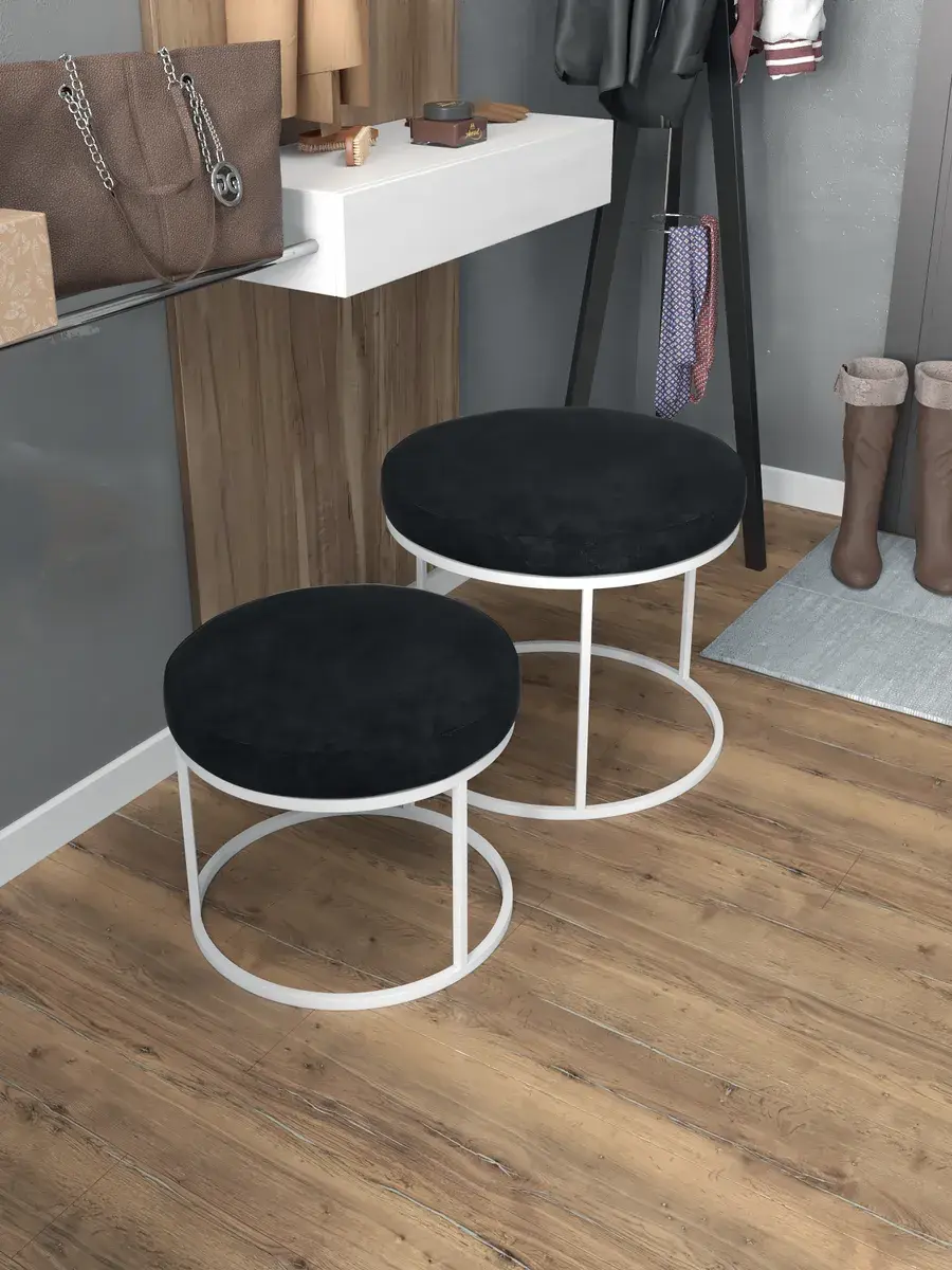 Комплект круглых банкеток - БЧЕРН - черное на белом