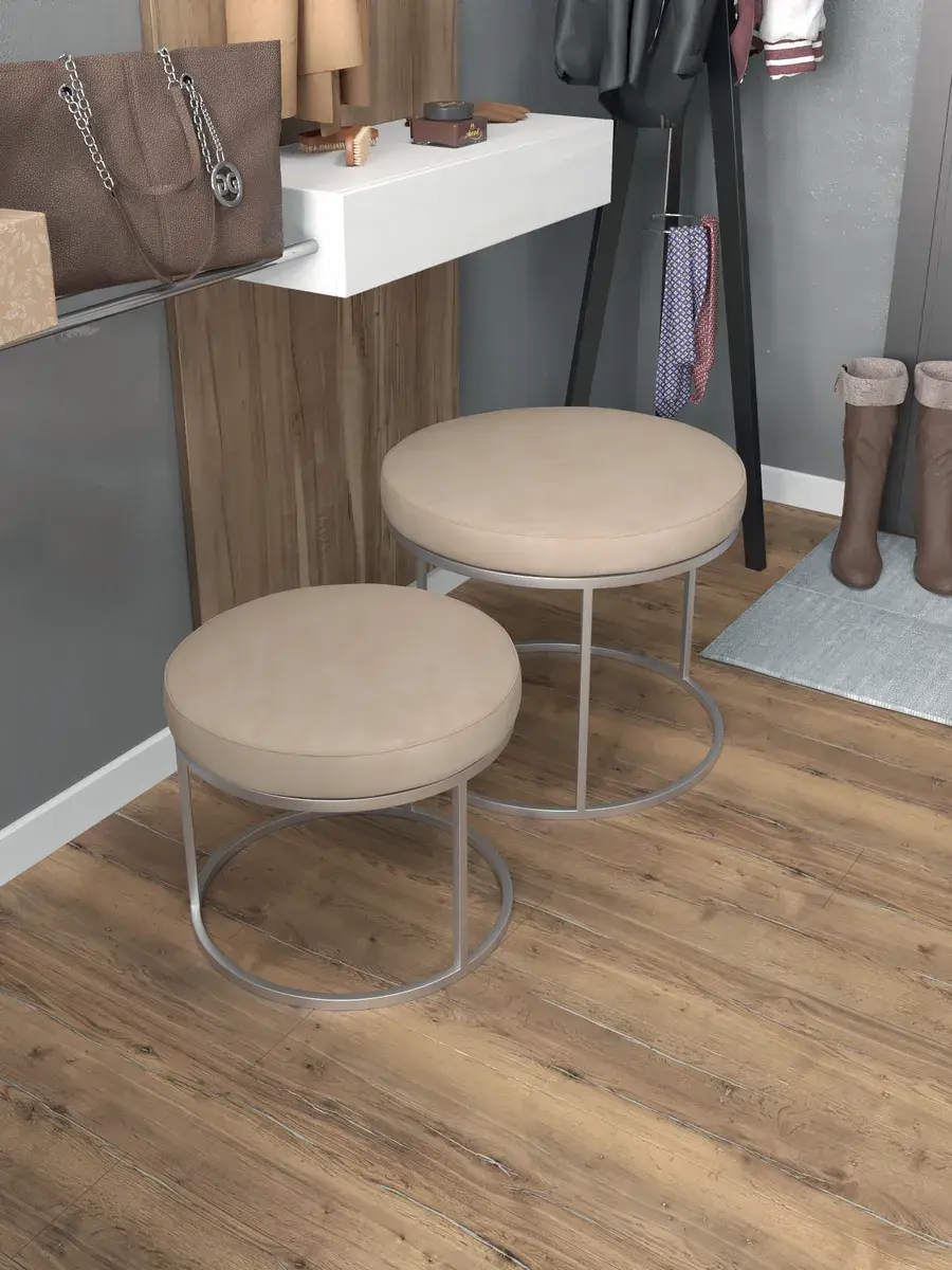 Комплект круглых банкеток - СБЕЖ - бежевое на серебрянном