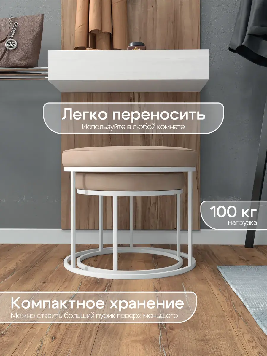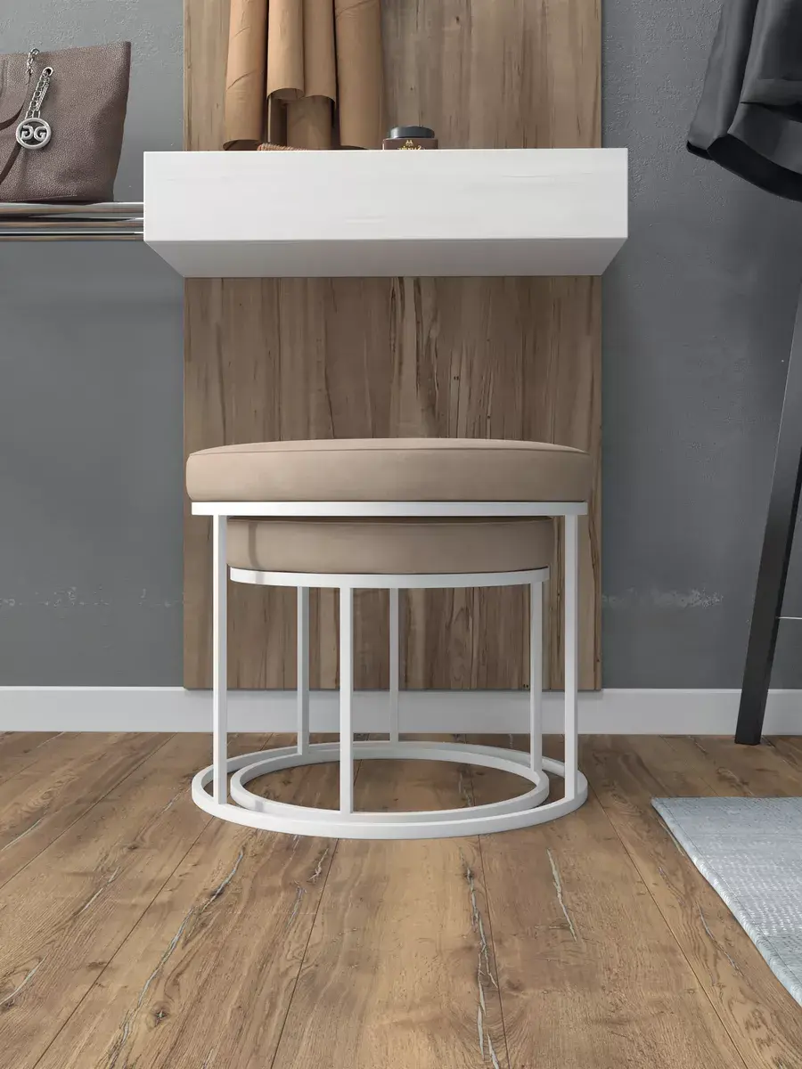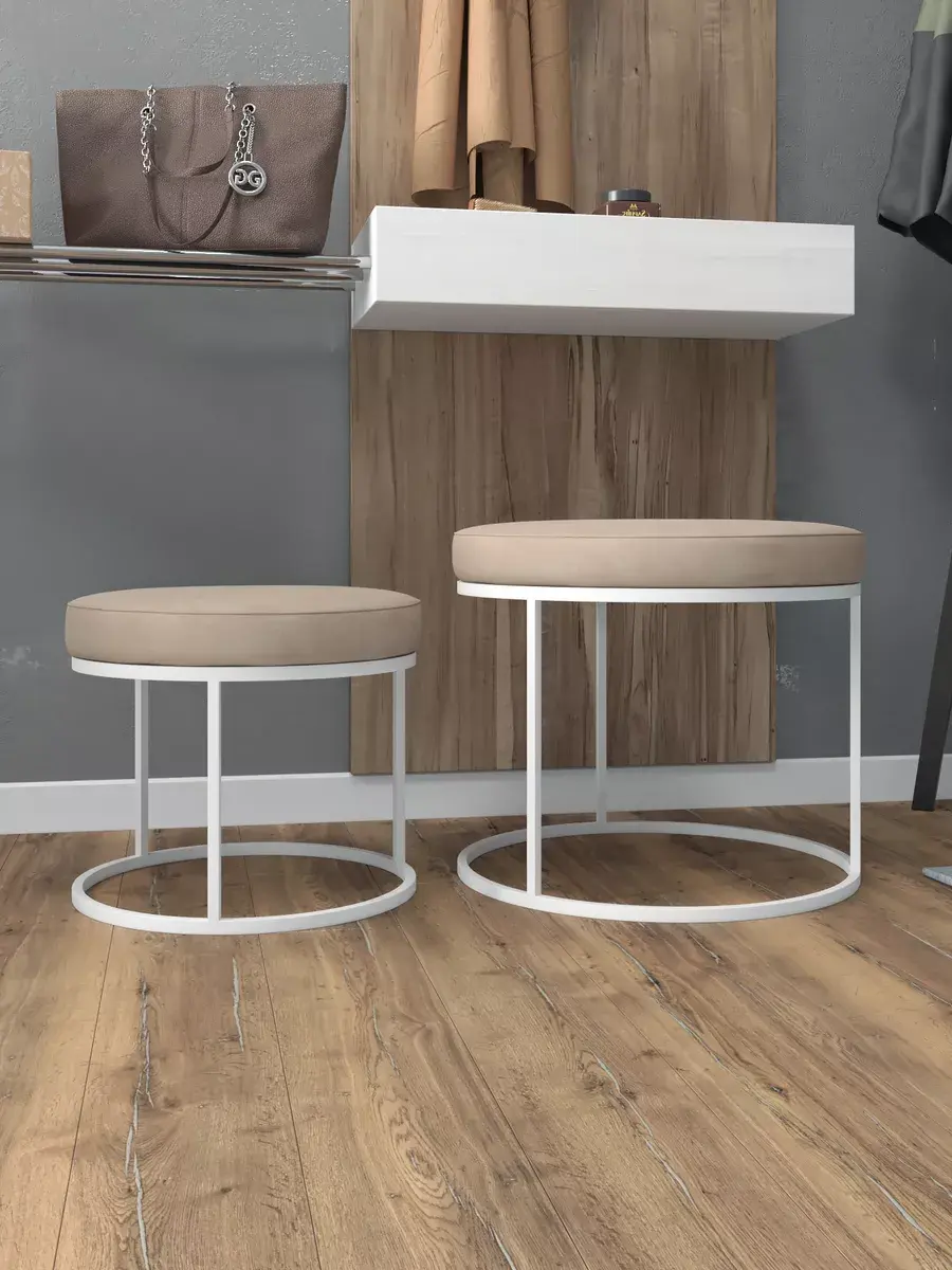 Комплект круглых банкеток - ББЕЖ - бежевое на белом