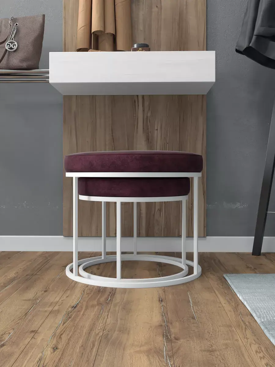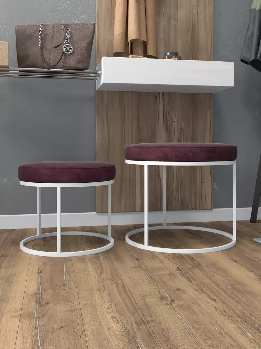 Комплект круглых банкеток - ББОРД - бордовое на белом