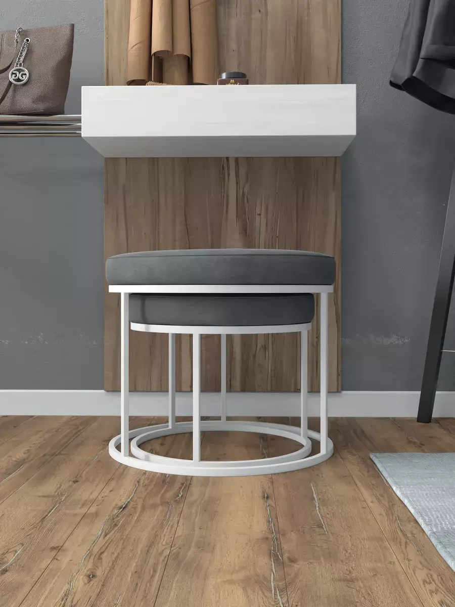Комплект круглых банкеток - БСЕР - серое на белом