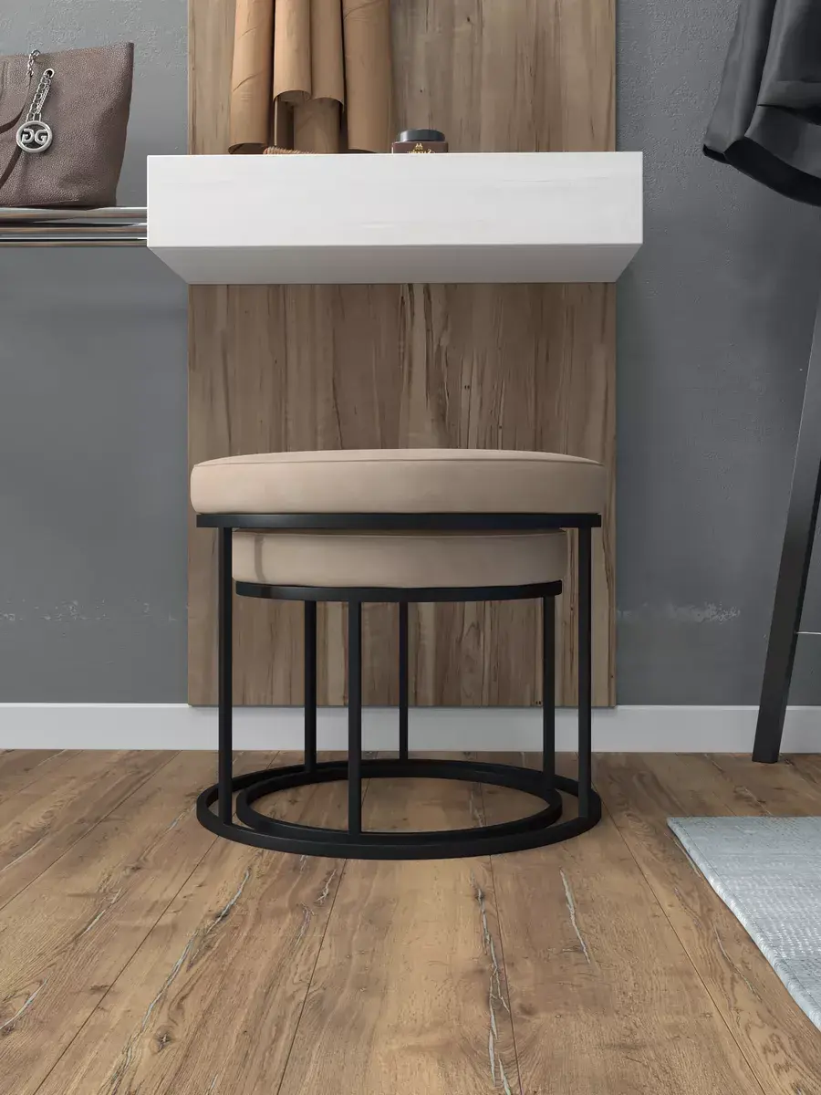Комплект круглых банкеток - ЧБЕЖ - бежевое на черном