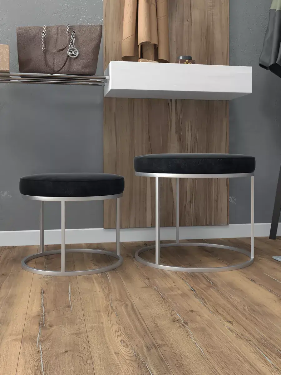Комплект круглых банкеток - СЧЕРН - черное на серебрянном