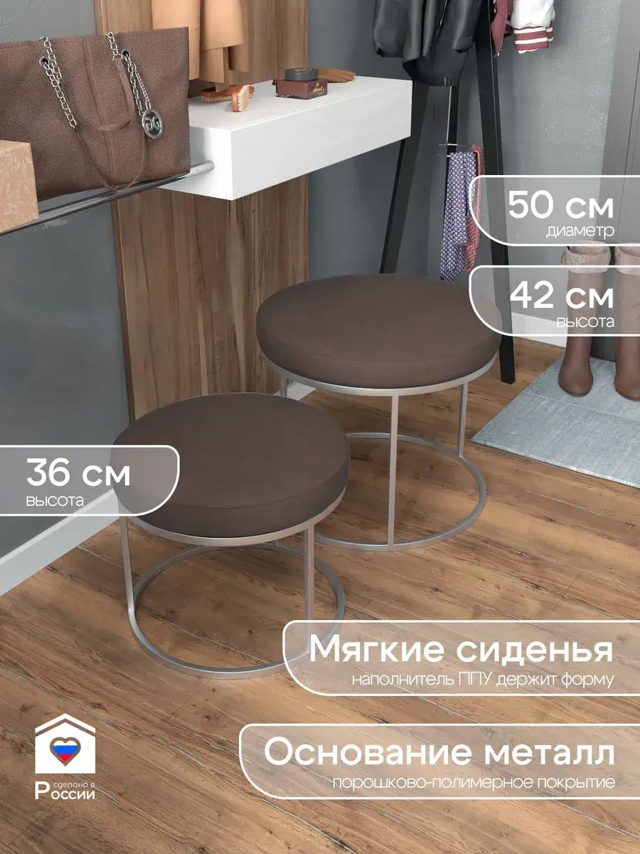 Комплект круглых банкеток - СКОР - коричневое на серебре
