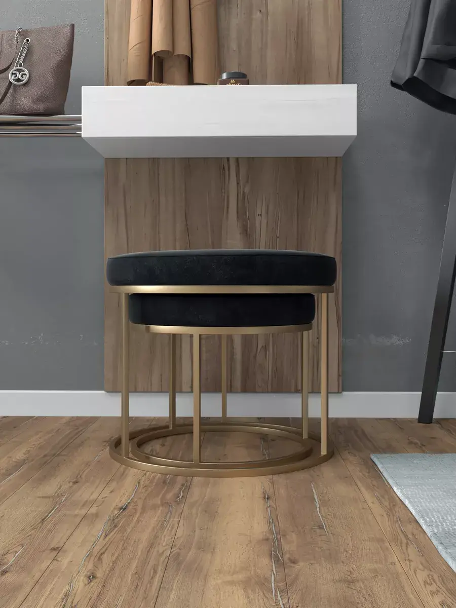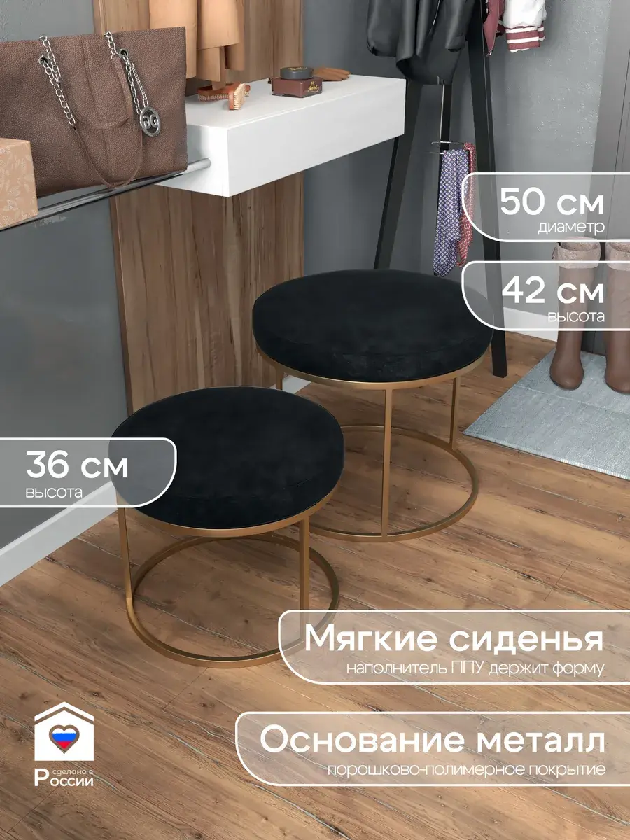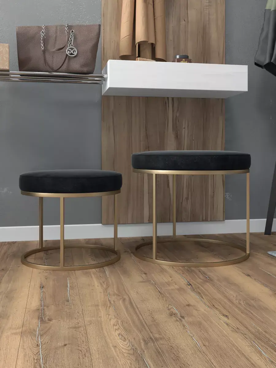 Пара пуфиков для гостиной — это стильный и функциональный предмет мебели. Они имеют прочное металлическое основание и мягкое сиденье, что делает их удобными и долговечными. Металлическое основание обеспечивает надёжность и прочность пуфиков, позволяя использовать их не только как сиденья, но и как небольшие столики или подставки для ног. Их конструкция позволяет легко перемещать пуфики по комнате, делая их универсальным решением для любого интерьера. Мягкая обивка пуфиков изготовлена из высококачественных материалов, которые сохранят свою первоначальную форму и цвет на протяжении долгого времени. Пуфики идеально подходят для гостиной, где они будут стильным акцентом и функциональным элементом. Вы сможете использовать их как дополнительное сиденье для гостей, как подставку для ног или как столик для различных предметов. Благодаря своим компактным размерам, пуфики не займут много места в вашей гостиной и легко впишутся в любой интерьер.