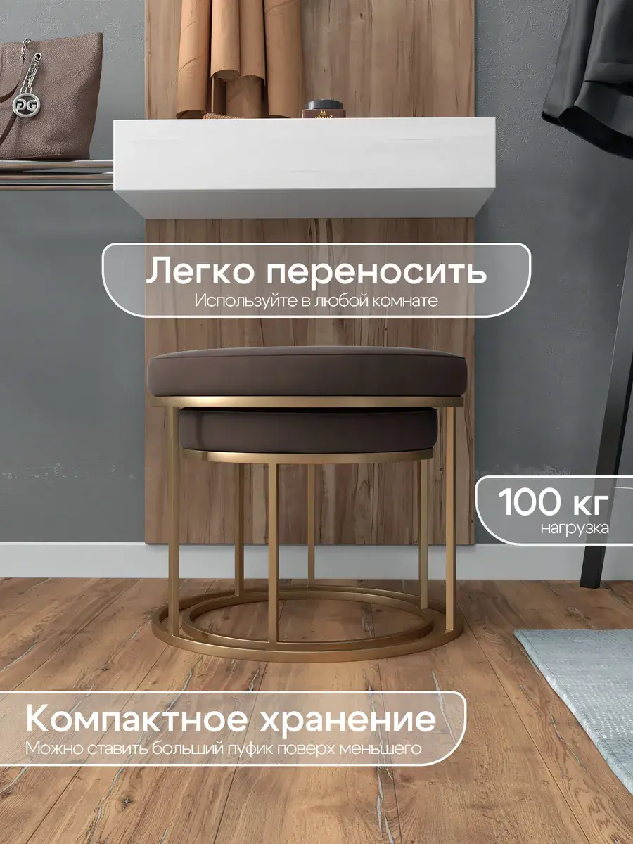 Пара пуфиков для гостиной — это стильный и функциональный предмет мебели. Они имеют прочное металлическое основание и мягкое сиденье, что делает их удобными и долговечными. Металлическое основание обеспечивает надёжность и прочность пуфиков, позволяя использовать их не только как сиденья, но и как небольшие столики или подставки для ног. Их конструкция позволяет легко перемещать пуфики по комнате, делая их универсальным решением для любого интерьера. Мягкая обивка пуфиков изготовлена из высококачественных материалов, которые сохранят свою первоначальную форму и цвет на протяжении долгого времени. Пуфики идеально подходят для гостиной, где они будут стильным акцентом и функциональным элементом. Вы сможете использовать их как дополнительное сиденье для гостей, как подставку для ног или как столик для различных предметов. Благодаря своим компактным размерам, пуфики не займут много места в вашей гостиной и легко впишутся в любой интерьер.