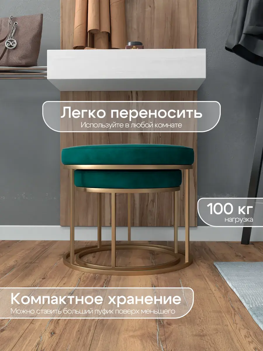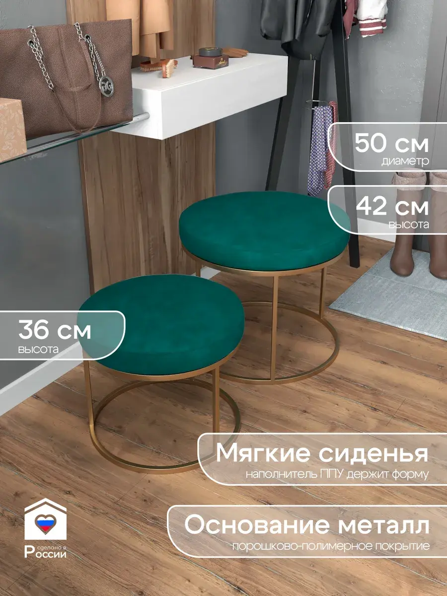 Пара пуфиков для гостиной — это стильный и функциональный предмет мебели. Они имеют прочное металлическое основание и мягкое сиденье, что делает их удобными и долговечными. Металлическое основание обеспечивает надёжность и прочность пуфиков, позволяя использовать их не только как сиденья, но и как небольшие столики или подставки для ног. Их конструкция позволяет легко перемещать пуфики по комнате, делая их универсальным решением для любого интерьера. Мягкая обивка пуфиков изготовлена из высококачественных материалов, которые сохранят свою первоначальную форму и цвет на протяжении долгого времени. Пуфики идеально подходят для гостиной, где они будут стильным акцентом и функциональным элементом. Вы сможете использовать их как дополнительное сиденье для гостей, как подставку для ног или как столик для различных предметов. Благодаря своим компактным размерам, пуфики не займут много места в вашей гостиной и легко впишутся в любой интерьер.