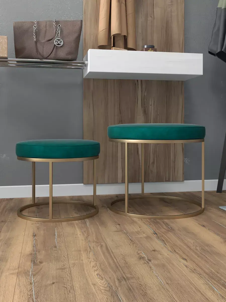 Комплект круглых банкеток - ЗЗЕЛ - зеленое на золотом