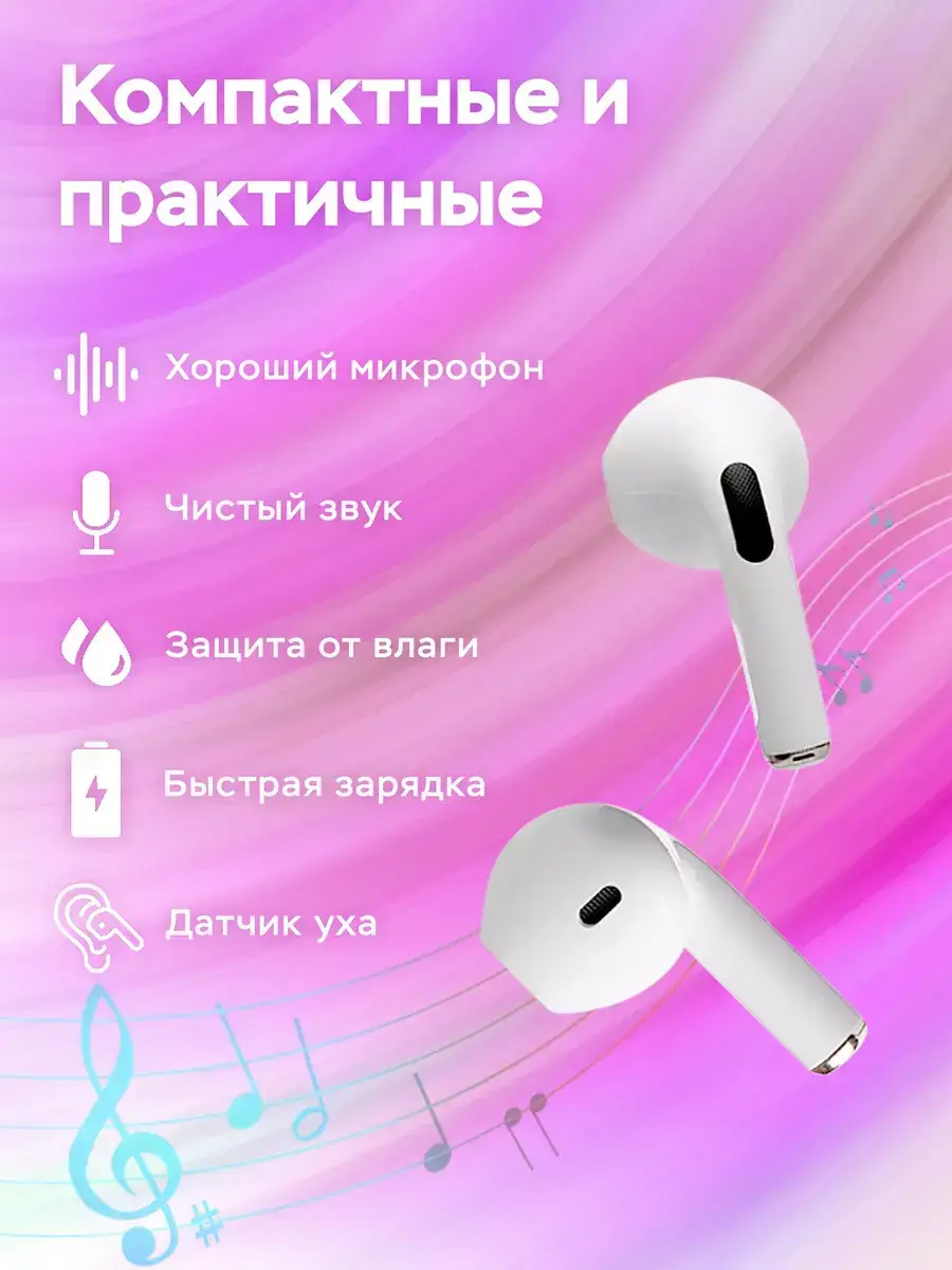 Наушники беспроводные Pro 4 – это качественный звук и удобство использования за низкую цену. Они удивят своими способностями даже самых требовательных пользователей. Не большой, практически детский, размер обеспечивает максимальный комфорт в длительных поездках и перелетах. Модель является бюджетной производной оригинала Airpods 2, и она маленькая. Поэтому они не реплика и не копия. Встроенные микрофоны в каждом наушнике поддержат разговор в мессенджере, помогут записать голосовое сообщение или ролик. Беспроводные наушники легко подключаются к bluetooth телефона или пк, xbox или playstation. Для iOS анимация соединит смартфон в одно нажатие. С беспроводной технологией забудьте о проводах и наслаждайтесь свободой движения. Зарядки аккумулятора хватает на несколько часов. Комплект не включает в себя силиконовый чехол, но его можно приобрести отдельно. Батарея кейса заряжается через шнур с разъемом Lighting (не Type-C). Корпус приятен и сделан из глянцевого abs-пластика. Мини гарнитура Pro4 работает с различными устройствами аудио видео техники. Дизайн подходит для тренировок, бега или спортивных игр. Это не накладная форма модели с ободком, она не закрытая, не вакуумная, не давит на ухо несмотря на то, что они не мягкие. Осторожно, они не водонепроницаемые. Это хороший подарок для ребенка, подростка или взрослого. Данный аксессуар не новинка на рынке, и они прекрасно себя зарекомендовали для прослушивания музыки и занятий спортом. Управление треками сенсорное. Шумоподавление отсутствует. Заглядывайте к нам чаще, чтобы поймать выгодную скидку.